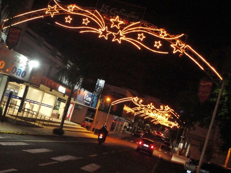 Centenas de pessoas participaram da programação especial de comemoração aos 78 anos de aniversário do município, realizada na noite de ontem na Rua de Eventos. O público eclético acomodou-se nas arquibancadas construídas entre a rua coberta e a Praça Flores da Cunha, para assistir aos shows musicais da banda regional Luauê e do sertanejo universitário nacional William Kamargo. Primeira atração da noite, a Luauê começou a tocar pouco antes das 20h, enquanto jovens e famílias ainda aproveitavam o entardecer do domingo nos arredores da Praça. Com seu repertório formado por músicas no estilo pop/reggae, a banda encantou o público com um misto de sucessos nacionais e músicas autorais. Logo após o show, a música deu espaço para uma breve solenidade que contou com a presença de autoridades, representantes de entidades e soberanas do município. –Hoje estamos aqui para festejar os 78 anos de Arroio do Meio, a ser comemorado na quarta-feira, dia 28. Cada cidadão arroio-meense é responsável por essa história e merece ser homenageado nessa data tão importante–, exclamou o Prefeito em exercício, Klaus Werner Schnack. Após breve solenidade, a noite seguiu com o show do sertanejo universitário William Kamargo, que animou o público com sucessos nacionais do gênero. Durante o evento foram acesas as luzes da nova decoração natalina do município, dispostas ao longo das ruas Dr. João Carlos Machado, Visconde do Rio Branco e transversais Teobaldo Käffer, General Daltro Filho – Rua de Eventos e Marechal Floriano Peixoto. Ao todo, a administração municipal investiu mais de R$ 65 mil na decoração intitulada –A doce magia do Natal–. O evento foi promovido pela Prefeitura Municipal e Câmara de Dirigentes Lojistas (CDL), com apoio da rádio Emoção e empresas patrocinadoras. Legenda: Iluminação natalina foi ligada ao longo da noite.