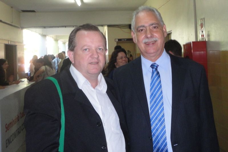 O Prefeito Sidnei Eckert participou do Seminário Todos pela Saúde, realizado na última terça-feira, dia 11, no campus da Ulbra, em Canoas. O encontro reuniu cerca de 200 prefeitos eleitos e reeleitos em 2012, e tratou sobre as políticas públicas de Saúde desenvolvidas no Estado, projetos prioritários do Governo do Estado para a área e o acesso a recursos disponibilizados. Na oportunidade, os Chefes do Executivo tiveram a oportunidade de conhecer os mecanismos pelos quais podem contar com a assessoria técnica da Secretaria Estadual da Saúde (SES), o trabalho das Coordenadorias Regionais de Saúde e a divisão regionalizada dos serviços no Estado. Um dos temas de destaque nas apresentações dos diretores da SES foi a Atenção Básica, que é o atendimento mais próximo do cidadão, por meio das Unidades Básicas de Saúde ou equipes da Estratégia de Saúde da Família. Legenda: Prefeito Sidnei Eckert junto ao Secretário de Estado da Saúde, Ciro Simoni. Fotos: Divulgação Texto: Assessoria de Imprensa