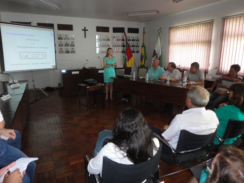 Visando a reativação da Comissão Municipal de Trânsito, a administração municipal promoveu na última segunda-feira, dia 25, um encontro entre representantes da comunidade, entidades e lideranças, para discutir questões de mobilidade urbana e a realidade do trânsito no município. Cerca de 60 pessoas estiveram no encontro, que contou com a participação da advogada Renata Elisabeth Becher, Coordenadora da área de Segurança Pública, Mobilidade e Trânsito da FAMURS. Sob o tema –O município e a municipalização do trânsito–, Renata apresentou informações sobre o Sistema Nacional do Trânsito e enfocou na importância da conscientização da população e mudanças de comportamento que visem o bem coletivo, para a paz e a ordem do trânsito no Brasil. –Trânsito é uma questão de cidadania–, ressaltou. O Prefeito Sidnei Eckert falou sobre o aumento do número de veículos na cidade e a importância de pensar em soluções para melhorar a questão da mobilidade urbana. –É responsabilidade de todos a busca por um trânsito melhor. É necessário pensarmos em conjunto para resolver essa questão–, constatou. Nos próximos dias devem ocorrer reuniões para a formação de uma nova Comissão de Trânsito, envolvendo representantes da sociedade, convidados a discutir e buscar soluções para este assunto. A Comissão de Trânsito trabalhou ativamente em 2010 e 2011, promovendo alterações de sentido de rua, estacionamento e demais melhorias pelas vias do município. Legenda: Coordenadora da área de Segurança Pública, Mobilidade e Trânsito da FAMURS, Renata Elisabeth Becher, abordou o tema –O município e a municipalização do trânsito–. Fotos: Maica Viviane Gebing Texto: Assessoria de Imprensa