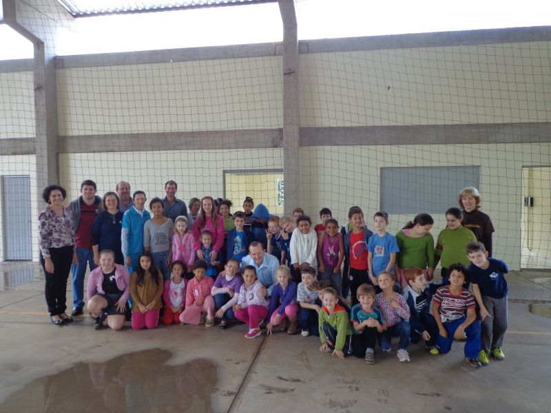 Com olhares curiosos dos 37 alunos da Escola Municipal de Ensino Fundamental Itororó, de Palmas, o Prefeito Sidnei Eckert e a Secretária de Educação e Cultura Eluise Hammes, acompanhados de demais autoridades e equipe diretiva da Escola, fizeram a entrega oficial da segunda etapa da Quadra Coberta de Esportes da localidade. A segunda etapa contempla iluminação, construção de vestiários masculino e feminino, copa, cozinha e fechamento parcial da quadra com muro de alvenaria de 1,10m. O investimento para a execução desta etapa foi de R$ 99.331,63, dos quais R$ 97.500,00 provenientes do Ministério do Esporte, somado à contrapartida do município. A obra foi executada pela Pinoh Engenharia, contratada via processo licitatório. Inaugurada em fevereiro de 2011, a quadra possui ainda 1.028,75m² de cancha coberta com piso polido, goleiras para futsal, redes de voleibol e proteção, tabelas de basquete e a pintura de demarcação da quadra, beneficiando a comunidade local, em especial os alunos da Escola localizada junto ao terreno da mesma. No ato da entrega, o Prefeito Sidnei Eckert reforçou a importância do uso da quadra pela escola e comunidade, para atividades de integração e práticas desportivas, em prol da saúde, bem estar e convívio. A diretora Arilene K. Wilsmann, ressaltou a importância do espaço para a comunidade local, em especial para a escola. –Estamos muito felizes com a realização desse sonho. Este é um espaço muito importante pra nós–, finalizou. Legenda: Equipe diretiva, administração municipal, autoridades e alunos em frente aos vestiários, copa e cozinha da Quadra de Esportes, entregues essa semana para uso da comunidade. Fotos: Maica Viviane Gebing Texto: Assessoria de Imprensa