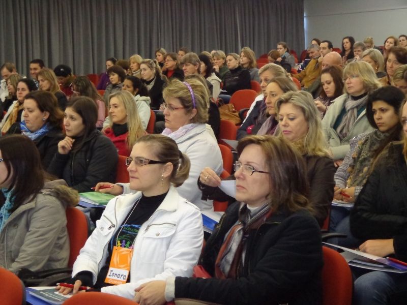 Os 180 professores da rede municipal de ensino participaram nos dias 17 e 18 do Seminário de Educação, realizado no Centro Universitário Univates, numa promoção da Secretaria Municipal de Educação e Cultura. Sob o tema –Escola e Família: de mãos dadas pela Educação–, o Seminário foi marcado por palestras, oficinas e mesas redondas. O encerramento da programação ocorre hoje, com o Dia de Estudos na Escola, quando os professores têm a oportunidade de discutir e analisar as contribuições do Seminário de Educação para a prática pedagógica, além de outras temáticas de estudo definidas pelas escolas. Também hoje, está sendo realizado no auditório Irmã Nísia, Colégio Bom Jesus São Miguel, o Simpósio da Educação Infantil, voltado para 110 educadoras das escolas comunitárias de educação infantil (ECEIs) do município. A nutricionista Joice Johann aborda o tema –Aprender para Ensinar: Alimentação nos primeiros anos de vida– e Ricardo Petter fala da temática "A Música na Educação Infantil: linguagem expressiva e criadora". O Seminário de Educação, o Dia de Estudos na Escola e o Simpósio da Educação Infantil são atividades de Formação Continuada, promovidas pela Secretaria de Educação e Cultura, visando a qualificação e o aprendizado permanentes dos educadores do município. Neste ano, o tema norteador esteve focado no projeto lançado no início do ano pela administração municipal –Escola e Família de mãos dadas pela Educação–. Legenda: Professores assistiram atentos à palestra da psicóloga Dra. Susana Schertner. Fotos: Maica Viviane Gebing Texto: Assessoria de Imprensa