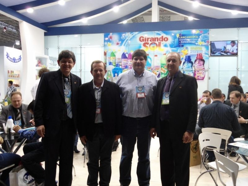 O Prefeito Sidnei Eckert e o Coordenador das Secretarias, Klaus Werner Schnack, estiveram na última semana em Porto Alegre, no Centro de Eventos da Fiergs, palco da Expoagas 2013. Na ocasião, prestigiaram as empresas e colaboradores arroiomeenses presentes no evento, ratificando o apoio da administração municipal e o desejo de sucesso aos mesmos, o que reflete diretamente na economia do município. Este ano, as empresas Girando Sol (produtos de limpeza), Elev (cosméticos) e Central Sul (produtos automotivos) marcaram presença na 32ª edição da Convenção Gaúcha de Supermercados, realizada no período de 20 a 22 de agosto. Além destas, diversos representantes comerciais e colaboradores do município, atuantes em empresas regionais, também participaram do evento. Ao todo, 340 expositores demonstraram seus produtos nos estandes da feira que proporciona oportunidades de fechar negócios, conhecer e lançar produtos no mercado, além de palestras e cursos de capacitação. Segundo balanço divulgado pela Feira, a Expoagas 2013 encerrou com um volume recorde de negócios, na ordem de R$ R$ 333,8 milhões, com destaque para os segmentos de limpeza, laticínios e equipamentos. Legenda: Líderes municipais visitaram as empresas arroiomeenses Elev, Girando Sol e Centralsul na Expoagas 2013. Fotos: Divulgação Texto: Assessoria de Imprensa