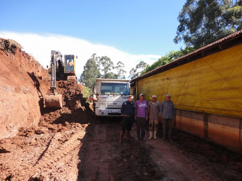 Com 23 anos de idade e a experiência de quatro anos de vínculo empregatício com uma oficina mecânica da cidade, Heitor Lansing está de volta à propriedade rural da família, em Canudos – Linha 32, há cerca de um ano. Tímido para falar, mas muito ágil na execução dos seus serviços, no comando de um moderno trator, o jovem afirma que gosta da rotina de trabalho no interior e que visualiza um futuro promissor na sucessão das atividades da família. O avô, Délcio Lansing, 74 anos, demonstra alegria em ver o interesse dos três filhos e do neto na continuidade das atividades iniciadas por ele há décadas. Com a criação anual de 100 novilhas, 1.350 suínos e mais de 250 mil frangos, o agricultor afirma que as políticas de incentivo do poder público evoluíram muito nos últimos cinco anos, colaborando para o crescimento do setor primário e investimentos dos produtores rurais em suas propriedades. –Ganhamos muito apoio com serviços de máquina, veterinário, programas de incentivo, além das estradas do interior, que melhoraram muito nos últimos anos–, explica. A família foi uma das beneficiadas com os serviços de máquina executados pela Secretaria de Agricultura na última semana. No local está sendo realizada a escavação para a modernização e ampliação da propriedade. De acordo com o Secretário de Agricultura, Paulo Heck, diversas ações de incentivo ao setor primário e à sucessão familiar estão sendo realizadas desde 2009, visando a permanência do jovem no campo e melhores condições de vida e trabalho para o produtor rural. Como destaque, Heck cita a realização de mais de 20 cursos de qualificação numa parceria entre administração municipal, Emater e Senar; programas de incentivo; promoção de encontros de Jovens Rurais; retorno da Feira do Produtor, potencializando a agricultura familiar; programas de açudagem e demais parcerias com os Governos Federal e Estadual. O Prefeito Sidnei Eckert reforça a preocupação da administração em executar melhorias constantes na infraestrutura do interior do município, ampliando a qualidade dos serviços de luz, água, telefonia, internet, estradas e qualificação profissional. –Para viver bem no interior, o nosso produtor rural precisa de serviços de qualidade disponíveis na sua comunidade e por isso visualizamos a Secretaria de Agricultura como um gerenciador do meio rural como um todo, sabendo que temos um longo caminho a trilhar ainda–, finaliza Eckert. Legenda: Secretário Heck acompanha execuçaõ do serviço, junto a três gerações dos Lansing. Fotos: Maica Viviane Gebing Texto: Assessoria de Imprensa
