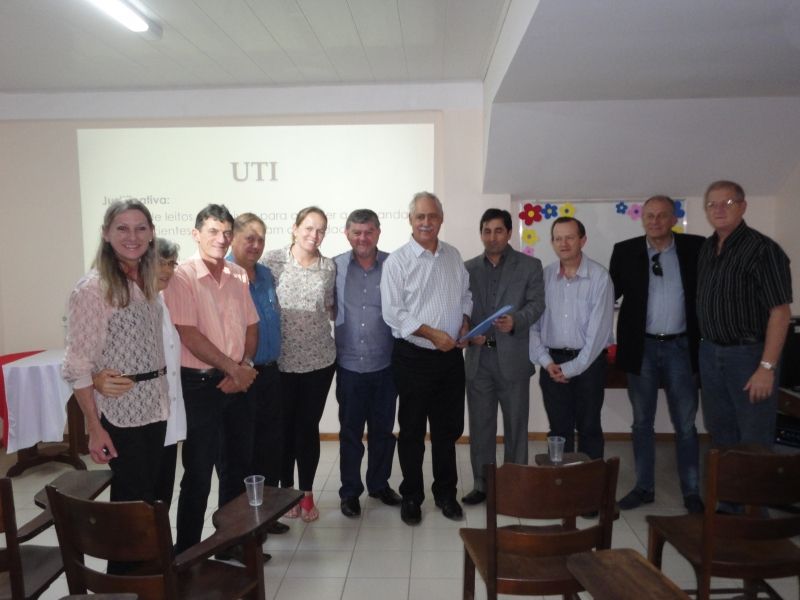O secretário estadual da Saúde, Ciro Simoni, esteve na última sexta-feira, dia 18, no município, em visita ao Hospital São José (HSJ). Na ocasião, a direção do Hospital e a administração municipal apresentaram ao Secretário o projeto para implantação de uma Unidade de Tratamento Intensivo (UTI) e ampliação do número de leitos, blocos cirúrgicos e cirurgias eletivas da instituição. Atualmente o HSJ disponibiliza 74 leitos. O projeto prevê a ampliação para 100, dos quais, dez destinados para a UTI. De acordo com dados apresentados pelo diretor do Hospital, Clóvis Soares, o Vale do Taquari possui apenas 17 leitos de UTI, concentrados nos hospitais de Lajeado e Estrela. O déficit chega a 41 leitos, o que poderia ser amenizado com a instalação de dez leitos em Arroio do Meio. O projeto pleiteia ainda a ampliação das atuais 50 cirurgias eletivas para cem e dos dois blocos cirúrgicos existentes para quatro. O Prefeito Sidnei Eckert afirmou que o objetivo do município é tornar o Hospital São José uma referência em atendimento na Região. Após visita pelas acomodações do Hospital, o Secretário Simoni elogiou a organização do local. –O alicerce da saúde é a atenção básica. A participação do Hospital São José e do município de Arroio do Meio é muito positiva quando o assunto é saúde–, destacou. Legenda: Autoridades e direção do Hospital entregaram projeto ao Secretário Simoni, reivindicando a implantação de UTI, ampliação de leitos, cirurgias eletivas e blocos cirúrgicos. Fotos: Maica Viviane Gebing Texto: Assessoria de Imprensa