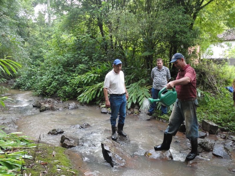 Neste período de temperaturas elevadas e pouca chuva, o clima fica propício para a procriação de insetos. Em Arroio do Meio, uma parceria entre Secretaria da Agricultura, Emater e comunidades do interior do município, põe em prática o Programa de Controle de Simulídos – popular mosquito borrachudo - há mais de uma década, sem interrupções. Na última semana ocorreu o sexto mutirão deste verão desenvolvido pelo Programa com as comunidades. Na ocasião, o aplicador voluntário Vianei Lansing, de Arroio Grande Superior, foi visitado pelo Secretário da Agricultura, Paulo Heck e o técnico agropecuário da Emater, Elias de Marco, que acompanharam o procedimento. De acordo com a Emater, Lansing é o mais antigo voluntário do Programa, com 14 anos de participação, sendo responsável pela parte baixa do arroio Café, lindeiro à sua propriedade. A cada mutirão ocorre a aplicação de um produto biológico nos arroios, que inibe a procriação do inseto. De Marco explica que a Emater realiza o monitoramento das larvas destes insetos em pontos específicos onde existem focos de criação. O trabalho é intensificado entre os meses de outubro a abril, quando o calor aumenta. Para a execução da prevenção, contam com o apoio de 50 aplicadores voluntários treinados, de diversas localidades do interior, onde o trabalho é realizado de forma intensa. Os envolvidos garantem que a quantidade de borrachudos e o incômodo que causam vem reduzindo ano a ano. De Marco explica ainda que no início do Programa, há cerca de 14 anos, foi realizado um mutirão de limpeza dos arroios e um trabalho de conscientização com a comunidade, em relação ao descarte correto do lixo. Desde então, o município realiza periodicamente o roteiro de recolhimento de lixo seco no interior, dando o destino correto ao material que antes acabava na natureza. –A comunidade tem aderido ano após ano ao programa porque nunca houve interrupção. Além disso, o Poder Público sempre disponibilizou o material necessário e apoiou o programa–, afirma De Marco. O CONTROLE – De acordo com De Marco, o defensivo aplicado para o controle dos mosquito borrachudo é biológico. O nome do agente é Bacillus Thuringiensis Subspecies Israelensis, conhecido como BTI. Segundo a Empresa Brasileira de Pesquisa Agropecuária (Embrapa), o BTI não causa danos em animais aquáticos como peixes, e em outros animais que bebem água. É um produto específico para combate de larvas do inseto. Geralmente sua aplicação se restringe a córregos água corrente e pequena profundidade. Legenda: Secretário Heck, Técnico De Marco e voluntário Lansing fazem o monitoramento e aplicação do agente biológico. Fotos: Maica Viviane Gebing Texto: Assessoria de Imprensa