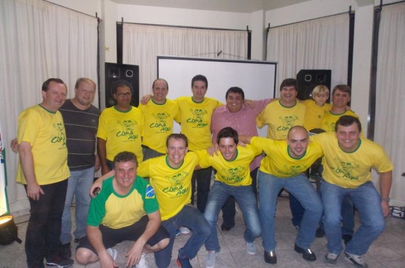 A menos de 100 dias do início da Copa do Mundo no Brasil, Arroio do Meio lançou na noite da última quinta-feira, dia 6, o projeto COPA AQUI. Numa iniciativa da administração municipal, em parceria com Clube Esportivo, lojas esportivas e de eletroeletrônicos, escolas municipais e demais representantes da comunidade, o projeto visa unir famílias e comunidade arroio-meense no Clube Esportivo e Rua de Eventos, nos dias dos jogos da seleção, para torcerem e comemorarem juntos. Para isso, uma comissão vem reunindo-se desde o começo do ano, tratando detalhes do evento que evidencia a paixão brasileira pelo futebol. Decoração alusiva à Copa, shows musicais, telões e demais atrações devem garantir a festa da comunidade a partir do dia 12 de junho, quando ocorre o primeiro jogo da seleção brasileira, contra a Croácia. Neste dia, estão confirmados o show da banda Apple, telões, copa, cozinha e ervateira. Nos outros dias com jogos confirmados – 17 de junho, Brasil e México e 23 de junho, Brasil e Camarões, shows com as bandas Pagode da Hora e Linck. O projeto segue até a grande final da Copa do Mundo, dia 13 de julho, diante classificação da seleção brasileira rumo ao hexacampeonato. Na noite do lançamento, pessoas da comunidade que vivenciaram a emoção de copas passadas deram seus depoimentos, afirmando a importância do esporte dentro da história do país. O Prefeito Sidnei Eckert ressaltou o clima de alegria, festa e comemoração que tomam conta do país sede da Copa do Mundo e convidou toda a comunidade a participar deste projeto de união e entretenimento. –Esporte tem que ser integração, momento de prazer, alegria e união. Que todas as famílias venham para a Rua de Eventos assistir aos jogos, para comemorarmos juntos mais uma vitória do Brasil–, destacou. Camisetas do projeto COPA AQUI podem ser adquiridas ao valor de R$ 20, nas lojas esportivas do município. Parte da renda será revertida às escolas, diante o comunicado do cliente na hora da aquisição da mesma. Painéis com a contagem regressiva estão expostos na Clínica Kerbes e loja Bruxellas. Toda a comunidade arroio-meense está convidada a integrar-se ao projeto, assistindo aos jogos da seleção brasileira no Clube Esportivo e Rua de Eventos. Legenda: Comissão vem se reunindo desde o início do ano para organizar projeto que visa proporcionar entretenimento para a comunidade no período da Copa do Mundo. Lançamento oficial ocorreu na última semana. Fotos: Maica Viviane Gebing Texto: Assessoria de Imprensa
