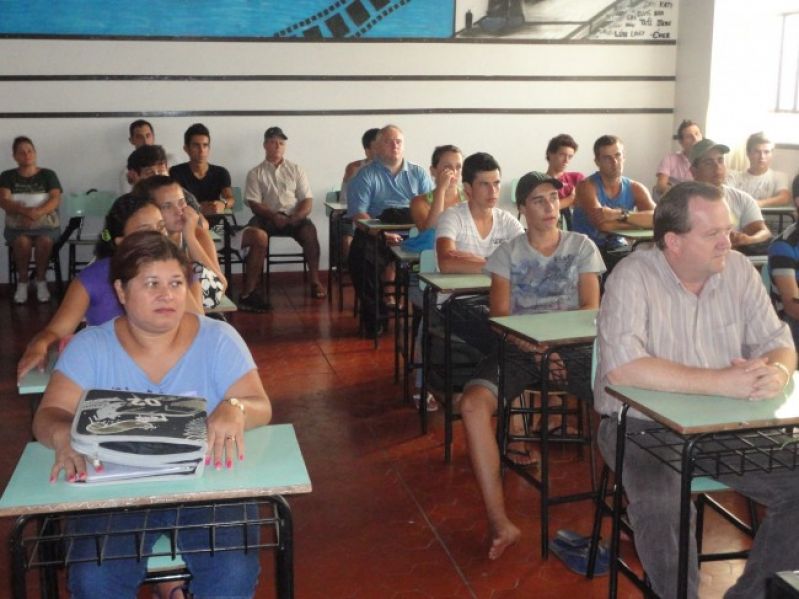 Cerca de 30 alunos, com idades variadas entre 15 a 50 anos, acompanharam o primeiro dia de aula da modalidade de Educação de Jovens e Adultos (EJA), ocorrido na noite de ontem, numa das salas do Centro Social, localizado na Comunidade São Paulo. O encontro marcou o início da oferta da modalidade EJA pelo município, sendo que a aula inaugural contou com a presença do Prefeito Sidnei Eckert, Presidente da Câmara de Vereadores Gustavo Kasper, Secretária de Educação e Cultura (SEC), Eluise Hammes, Diretora da EMEF Barra do Forqueta, Ionara Sbardelotto, Conselho Municipal de Educação, Sindicato dos Professores de Arroio do Meio (SIPRAM), Associação Círculo de Pais e Mestres (ACPM) da EMEF Barra do Forqueta, equipe da SEC, coordenadoras e professores da EJA. Na ocasião, a Secretária Eluise acolheu os alunos da EJA, reforçando o principal objetivo do curso que é garantir condições adequadas para que todos tenham a oportunidade de concluir os estudos com êxito. –Queremos que todos tenham a oportunidade de aprender–, afirmou. O Chefe do Executivo ressaltou a importância da parceria entre a administração municipal e a EMEF Barra do Forqueta para a realização do projeto e afirmou que a administração agiu de forma rápida para oportunizar essa modalidade de ensino. –Muitas pessoas se mobilizaram para que este objetivo se concretizasse. Quero parabenizar a todos pela vontade e coragem de voltar a estudar, aproveitem ao máximo este grupo de professores e o espaço físico disponibilizado especialmente para vocês–, disse Eckert. A aluna Genair Dornelles Fonseca, 51 anos, demonstrava ansiedade em retornar aos estudos após quase quatro décadas fora da sala de aula. Genair tem o objetivo de concluir o Ensino Fundamental e ressalta a importância do contato com colegas e professores e a relevância que o retorno á sala de aula representa para ela. –Tenho uma filha que se forma no Ensino Médio esse ano e também me motiva–, comemora. As aulas ocorrem de segunda a sexta-feira, no Centro Social, das 19h às 22h35min. Maiores informações na Secretaria de Educação e Cultura ou na EMEF Barra do Forqueta. Legenda: Prefeito Sidnei Eckert, junto aos alunos do EJA, acompanhou parte da primeira aula voltada a jovens e adultos. Fotos: Maica Viviane Gebing Texto: Assessoria de Imprensa