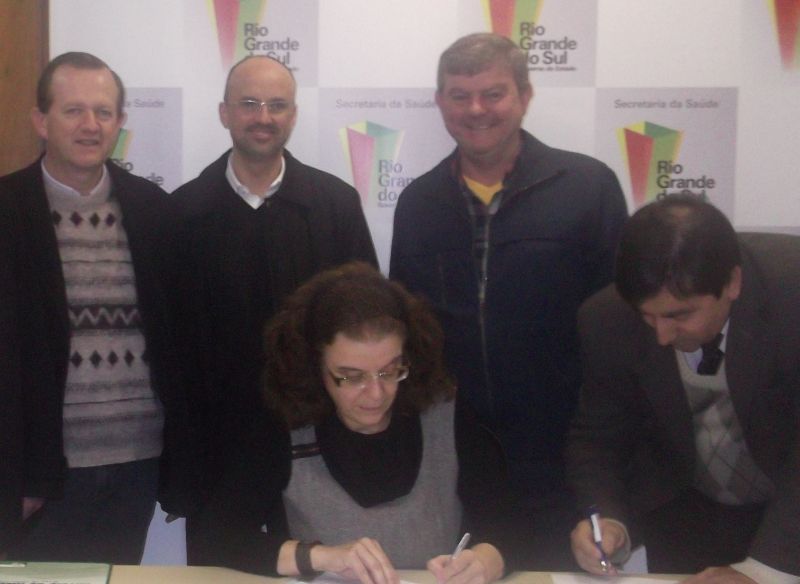 O Prefeito Sidnei Eckert e o vice Áurio Scherer acompanharam o Diretor do Hospital São José, José Clóvis Soares, à Secretaria Estadual da Saúde, em Porto Alegre, na última terça-feira, dia 1º. Na ocasião, Soares assinou um convênio que garante o repasse de R$ 65 mil para o Hospital, destinados para a aquisição de equipamentos. O recurso é proveniente da Participação Popular e Cidadã. A Secretária de Estado Sandra Fagundes e o Diretor do Departamento de Assistência Hospitalar e Ambulatorial (DAHA), Marcos Lobato, participaram do ato. Os líderes municipais aproveitaram ainda o encontro para entregar um ofício à Secretária Estadual de Saúde, reforçando o pedido e a necessidade da ampliação do Hospital São José e instalação de 10 leitos de Unidade de Tratamento Intensivo (UTI) adulto no município. Legenda: Líderes locais com membros da Secretaria Estadual da Saúde. Fotos: Divulgação Texto: Assessoria de Imprensa