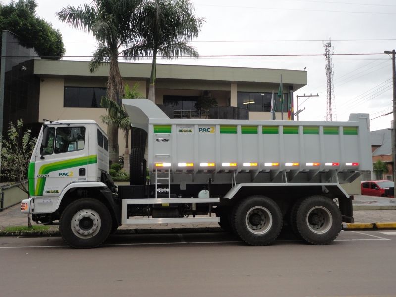 Arroio do Meio foi beneficiado com um caminhão caçamba truck Mercedes Benz do Programa de Aceleração do Crescimento (PAC2). A entrega ocorreu no último dia 28, no Parque do Imigrante, em Lajeado, quando 129 máquinas foram repassadas aos municípios da Região, via Ministério do Desenvolvimento Agrário (MDA). O caminhão será utilizado na recuperação de estradas, por meio do programa municipal de Mutirão de Máquinas. Uma retroescavadeira entregue ao município em maio de 2013 e uma motoniveladora recebida neste ano completam o kit de equipamentos requisitados ao Governo Federal em 2012, por meio de carta consulta do programa que prevê a aquisição de máquinas e equipamentos para recuperação de estradas vicinais, voltado para municípios de até 50 mil habitantes. Ao todo, 94 municípios foram beneficiados. Desde 2009 a administração municipal vem investindo na recuperação da frota do parque de máquinas. De acordo com o Prefeito Sidnei Eckert, mais de R$ 4 milhões foram investidos na reforma e aquisição de maquinários, visando garantir o atendimento às estradas gerais, bairros, loteamentos e propriedades rurais. Legenda: Veículo será utilizado na recuperação das estradas. Fotos: Maica Viviane Gebing Texto: Assessoria de Imprensa