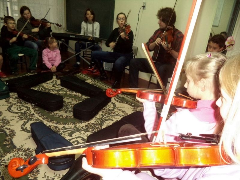 Aulas de violino e flauta serão ministradas para 40 alunos do 1ª ao 4º ano da Escola Municipal de Ensino Fundamental (EMEF) Barra do Forqueta. A novidade faz parte do Programa Mais Cultura nas Escolas, dentro do Programa de Turno Integral Mais Educação. As aulas iniciam ainda no mês de julho e se prolongam durante seis meses, de forma semanal. O objetivo do Programa, de acordo com a Secretaria de Educação e Cultura, é fomentar a parceria entre iniciativas culturais e escolas públicas, ampliando a democratização, o acesso à cultura e o respeito cultural de estudantes e comunidades escolares. A EMEF Barra do Forqueta foi selecionada dentre cinco mil escolas que enviaram projetos. A entidade cultural parceira do projeto é a Escola de Música de Josélia Jantsch Ferla. Para possibilitar o projeto, a Escola será contemplada com R$ 20 mil do Governo Federal. Este valor será aplicado na aquisição de violinos e flautas para uso individual dos alunos e pagamento dos profissionais responsáveis pelas oficinas. Para o encerramento do projeto, está previsto um concerto didático envolvendo os alunos, direcionado para a comunidade escolar e do bairro. –Este projeto é uma das propostas possíveis porque o município busca parcerias e por apostar no programa Mais Educação, que hoje atende seis escolas em turno integral–, reforça a Secretária Eluise Hammes. Implantado em 2011 no município, o programa Mais Educação atende cerca de 400 alunos em seis EMEFs, oferecendo turno integral com oficinas, refeições e garantia da permanência das crianças dos anos iniciais na escola, enquanto os pais trabalham. No total, Arroio do Meio possui dois mil alunos matriculados em 13 escolas municipais. Legenda: Aula inaugural do programa ocorreu no último dia 26, com a participação dos alunos da escola de música parceira do projeto. Fotos: Divulgação Texto: Assessoria de Imprensa